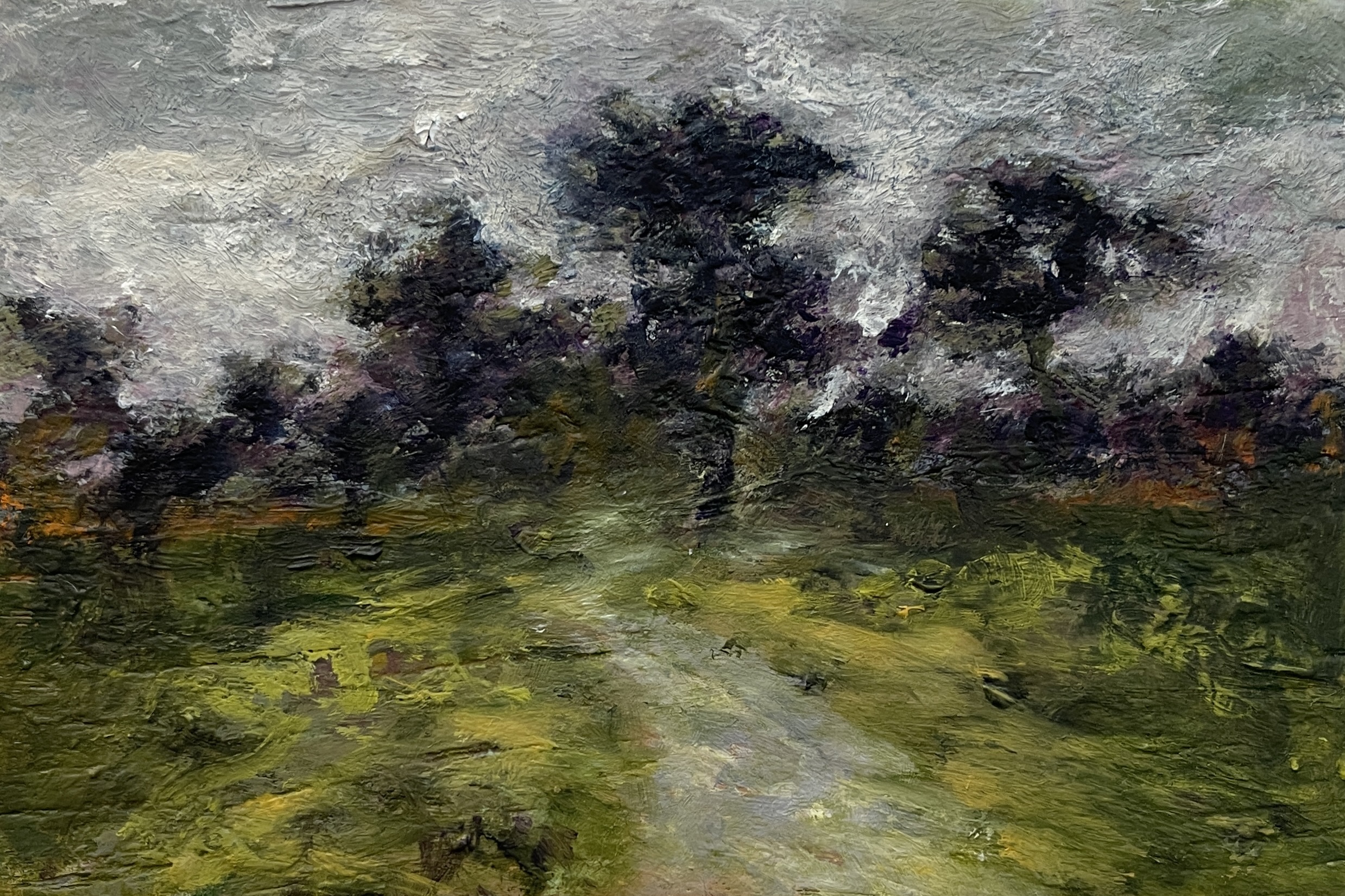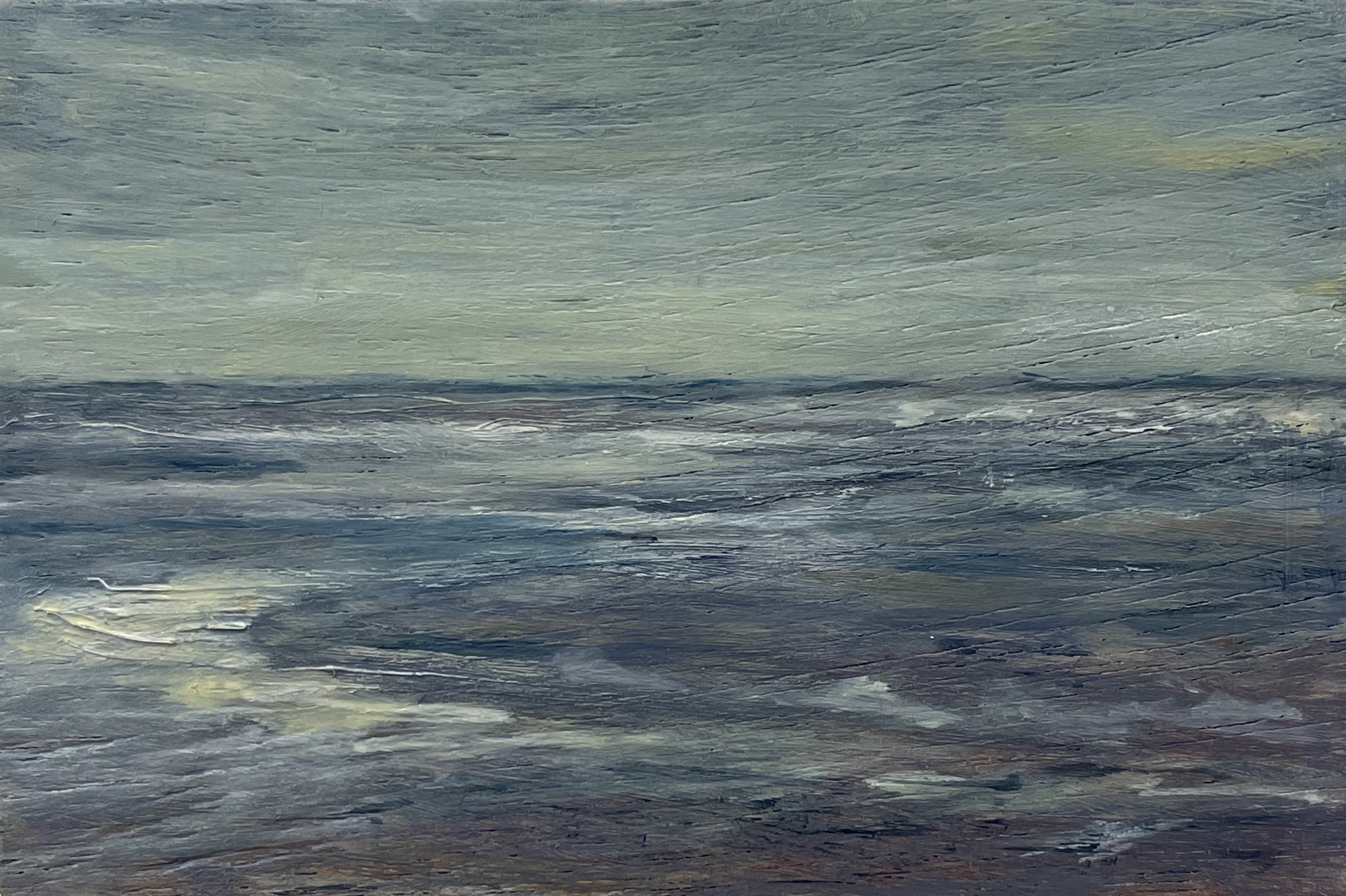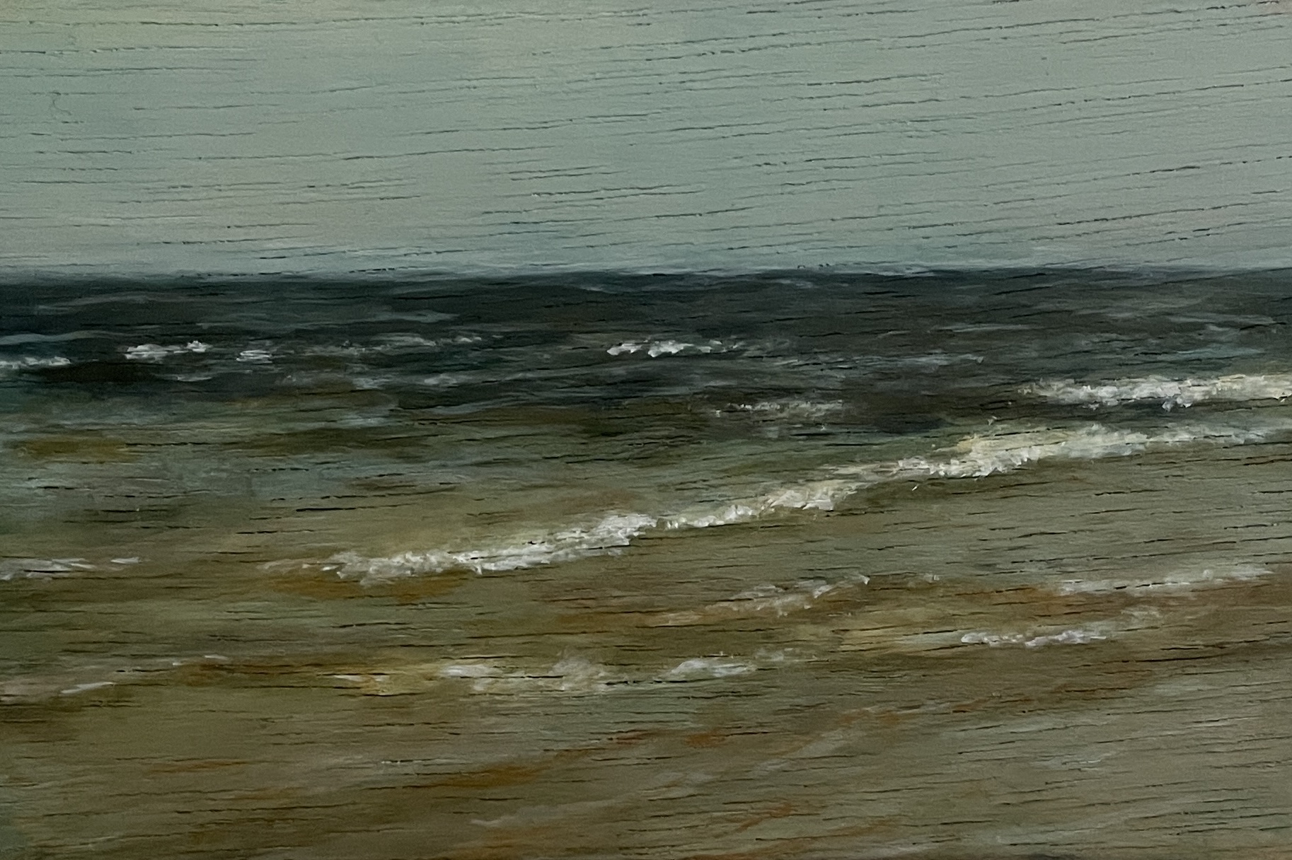 De houten paneeltjes, beschilderd met olieverf, hebben bewust geen titel, nergens is bebouwing te zien. Er zijn geen kerktorens, paaltjes of dieren. Je bent als toeschouwer alleen in de ruimte, vrij om te voelen en te associëren.