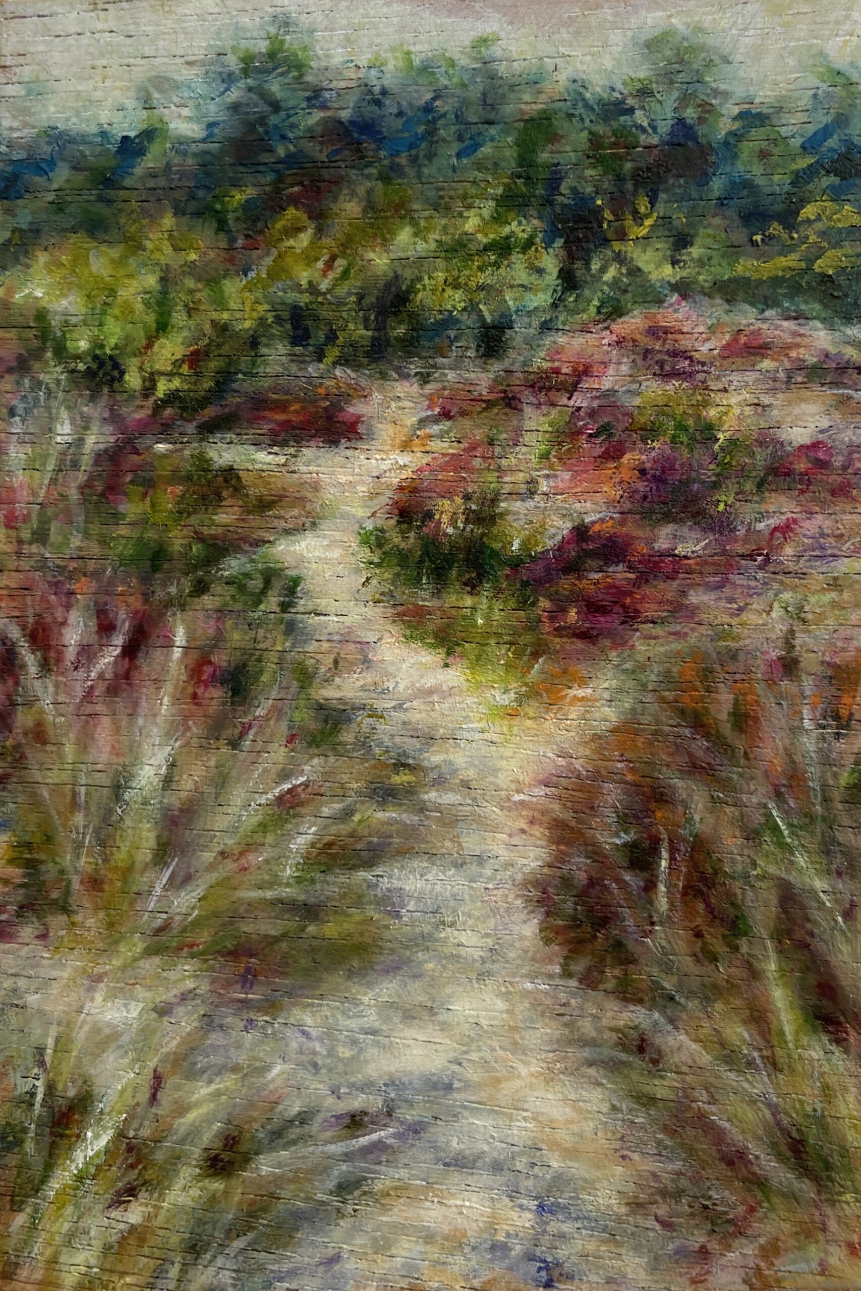 De speciale serie ‘Op Pad’ is een vertaling van de lange wandelingen die ik maak. In de natuur is het woordeloos stil. Ik zie meer. Ruimte, beweging en lichtval. Ik kom thuis in mijn innerlijk landschap.